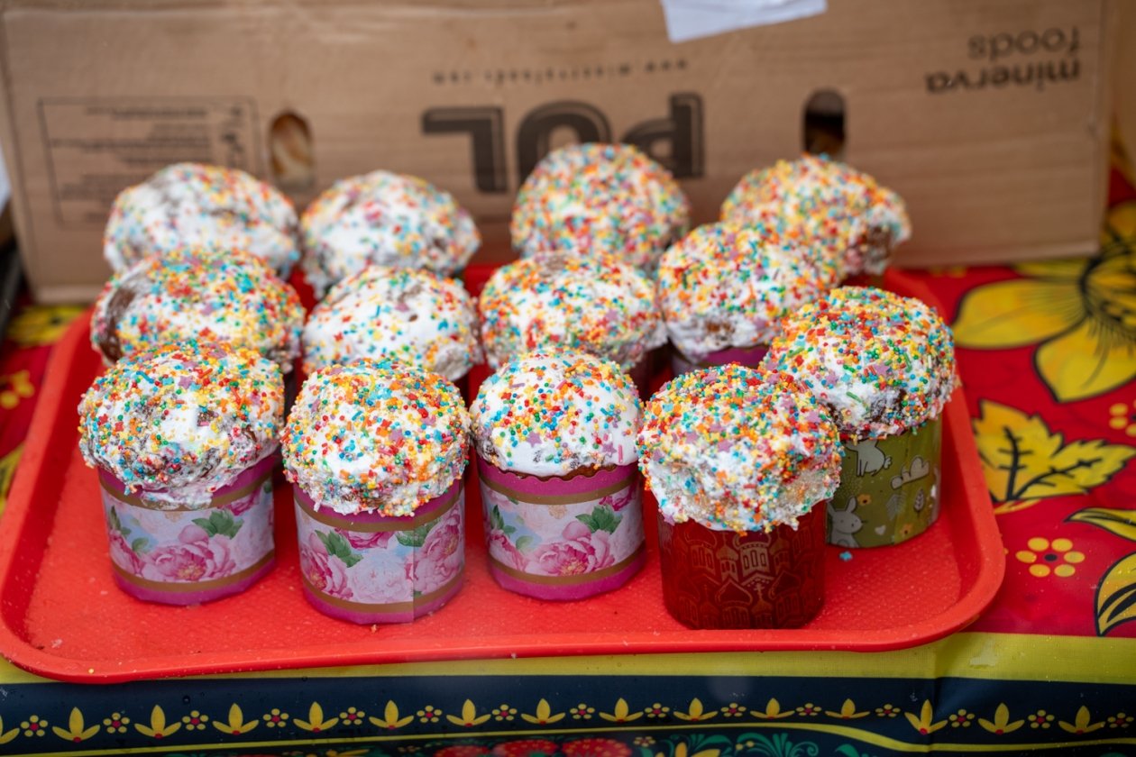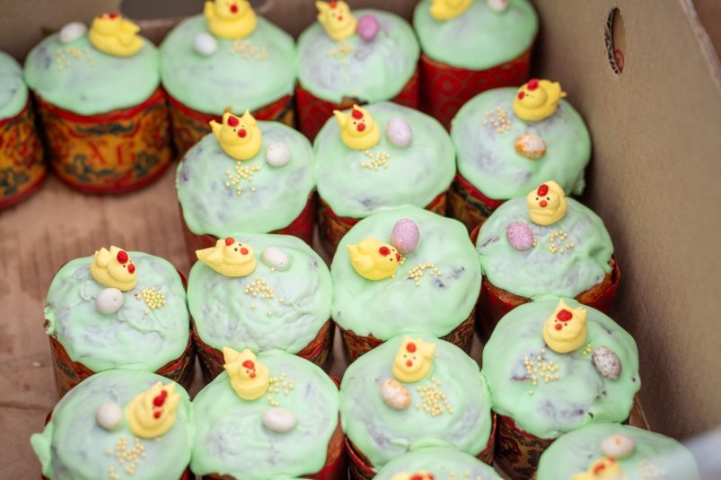 Особой популярностью пользовались куличи, пасхи и яйца. У каждого производителя — свой рецепт: одни добавляют морковное пюре, другие — натуральный творог. Посетители отмечали разнообразие и качество выпечки.