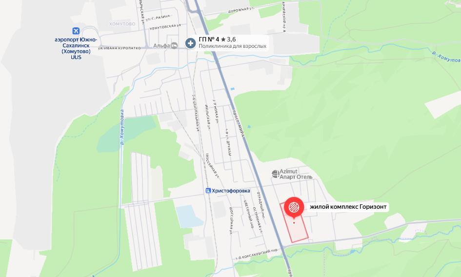 Этот ЖК от одноименного застройщика пока самый удаленный от Южно-Сахалинска и фактически находится за пределами города, напротив планировочного района Лиственничное, но не входит в него. Сейчас "Горизонт" находится на стадии стройки, несколько корпусов были сданы в 2023 году и заселены. Но судя по жалобам, удовольствия от жизни в ЖК мало — дискомфорт создают коммунальные аварии. О них мы писали здесь.