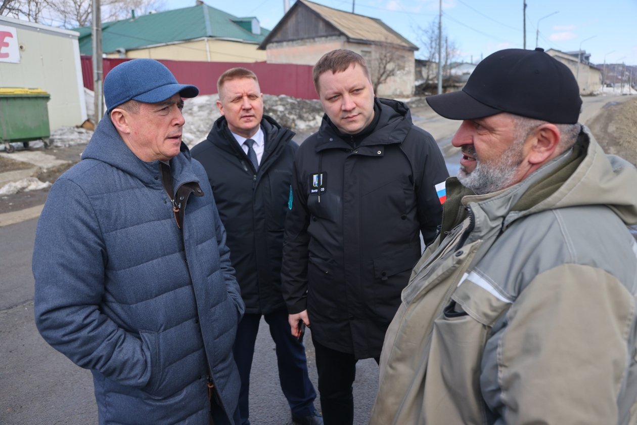 Ход ремонта трассы во время рабочей поездки в Макаровский район проинспектировал губернатор Валерий Лимаренко. Часть ям уже отремонтирована с помощью технологии литого асфальта, которая позволяет работать при минусовых температурах. Сейчас рабочие ждут, когда оттает земля. В мае, после запуска асфальтобетонных заводов, в ход пойдет горячий асфальт. По словам дорожников, техники и материалов хватает.
