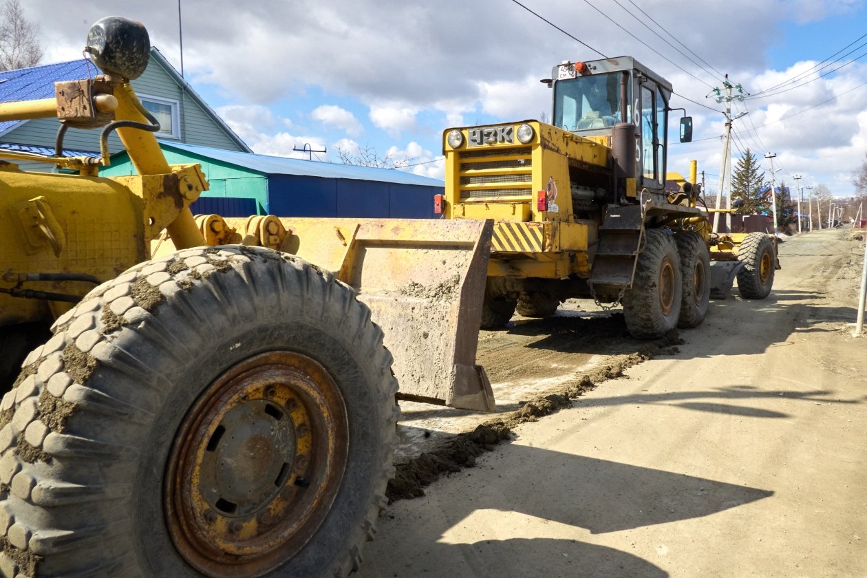Сейчас специалисты выравнивают поверхность дорожного полотна. Технику задействуют только при отсутствии осадков. Дают просохнуть грунту, чтобы крупногабаритные машины, весом от 14 до 16 тонн, не способствовали образованию колеи на мокром покрытии.