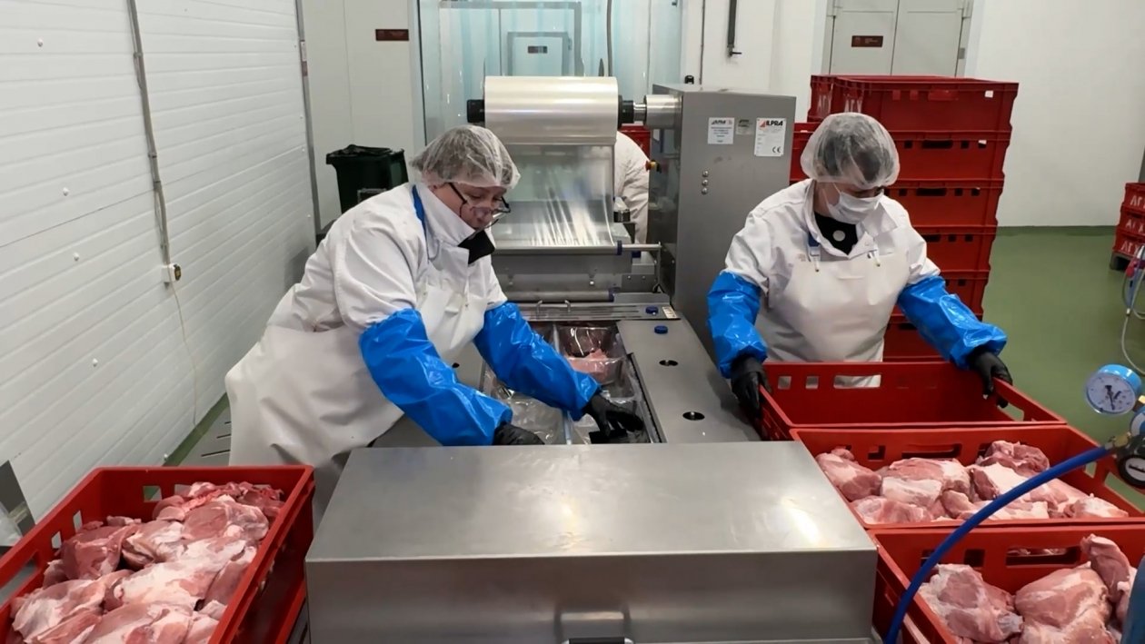 Ассортимент продукции мясного цеха насчитывает более 70 наименований. Здесь выпускают крупнокусковые и мелкокусковые полуфабрикаты, продукцию в маринаде, порционные изделия в панировке, котлеты, фарш, копчено-вареные деликатесы и прочую продукцию. В этом году планируется запустить производство пельменей. Всего на предприятии работают 59 человек.