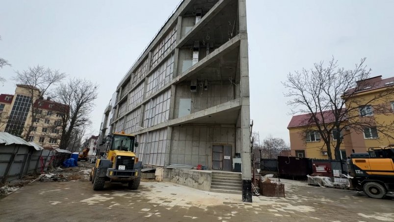 На сегодняшний день фасадные работы завершены полностью, а инженерные системы готовы на 80%. Строители ожидают поставки витражей для главной стены и приступают к подготовке внутренних помещений к покраске.