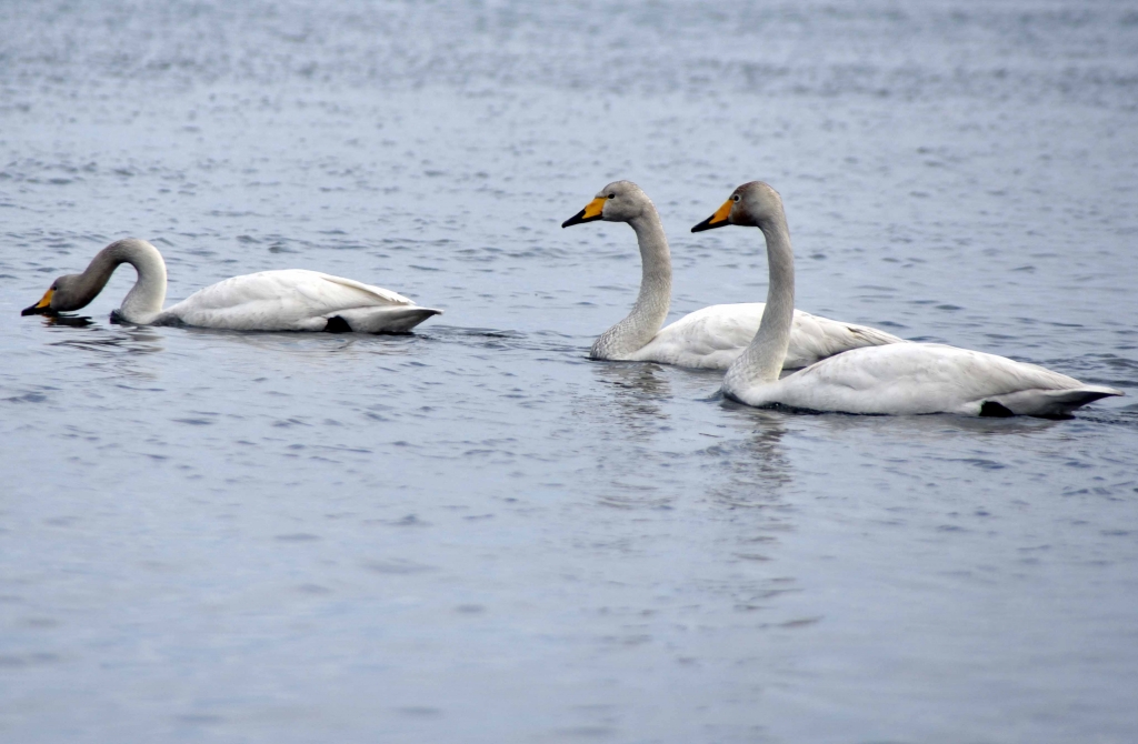 Первые лебеди появились в море вблизи села Охотского. Пока их немного – всего девять, но этого количества хватило, чтоб привлечь внимание людей. Уже с утра в сторону моря потянулась из областного центра вереница автомобилей. Сахалинцы спешат полюбоваться стайкой лебедей, сообщает корр. ИА SakhalinMedia.