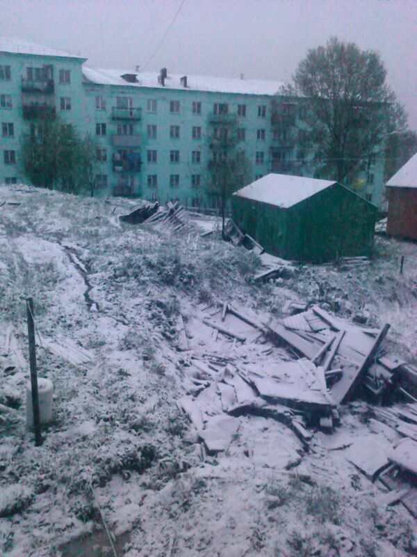 Циклон, который в последние два дня определяет погоду на Сахалине, принес на остров не только сильные дожди, но и небольшие снегопады. По словам читателей SakhalinMedia, снег в ночь на пятницу, 5 июня, выпал в северном пригороде областного центра - Синегорске. Вновь побелели также сопки в окрестностях Южно-Сахалинска - на присланном читателем фото виден западный склон горы Большевик, на которой расположен спорткомплекс "Горный воздух".