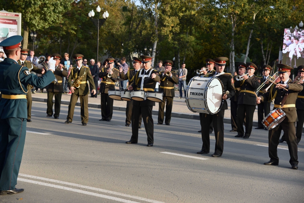 Фестиваль военных оркестров открылся плац-концертом на главной площади Южно-Сахалинска
