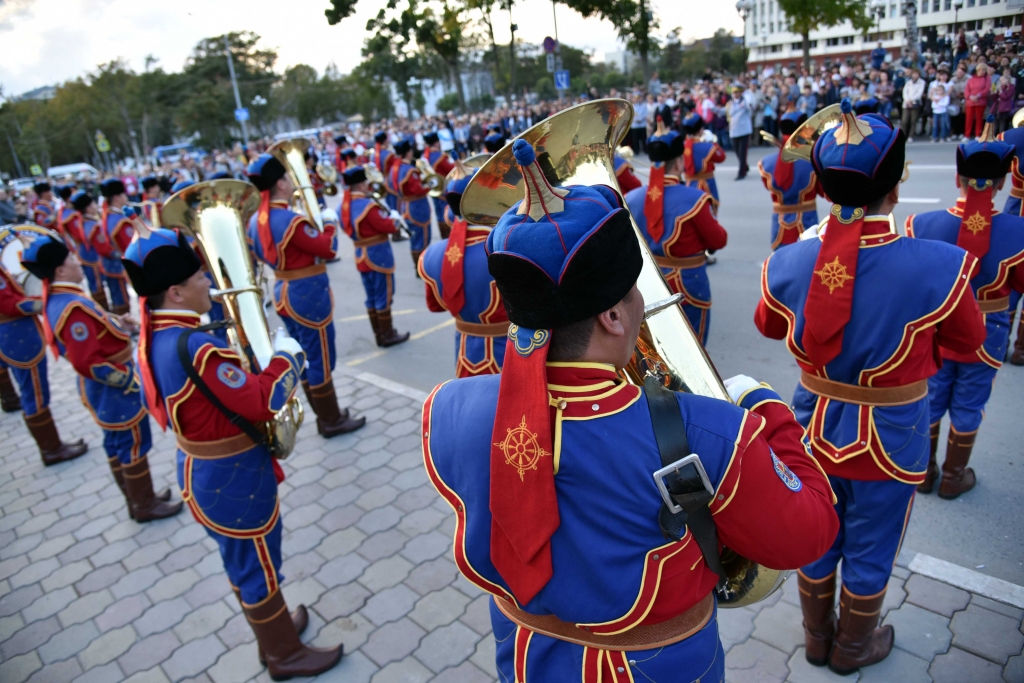 Дефиле и концерты провели военные оркестры в честь окончания фестиваля на Сахалине