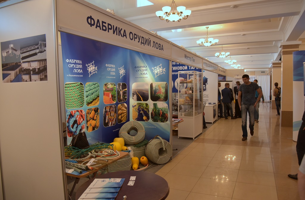 На площадке перед зданием Дома культуры и в фойе выставлено холодильное и морозильное оборудование, оборудование для переработки рыбного сырья и морепродуктов, упаковочные машины, складское и торговое оборудование, тара, сети, снасти и оснастка.