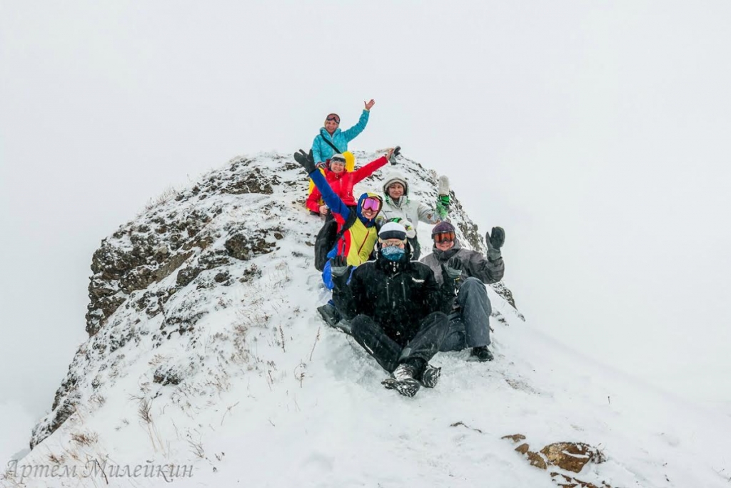 В 9.00 от площади Победы стартовала автоколонна с южносахалинцами, решившими покорить на пик Смелый. Утром в бухте Тихой был штиль, но как только первые участники добрались к месту старта, погода резко поменялась: начался порывистый ветер со снегом, но восхождение все же состоялось.