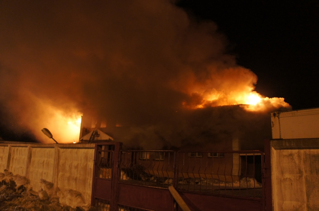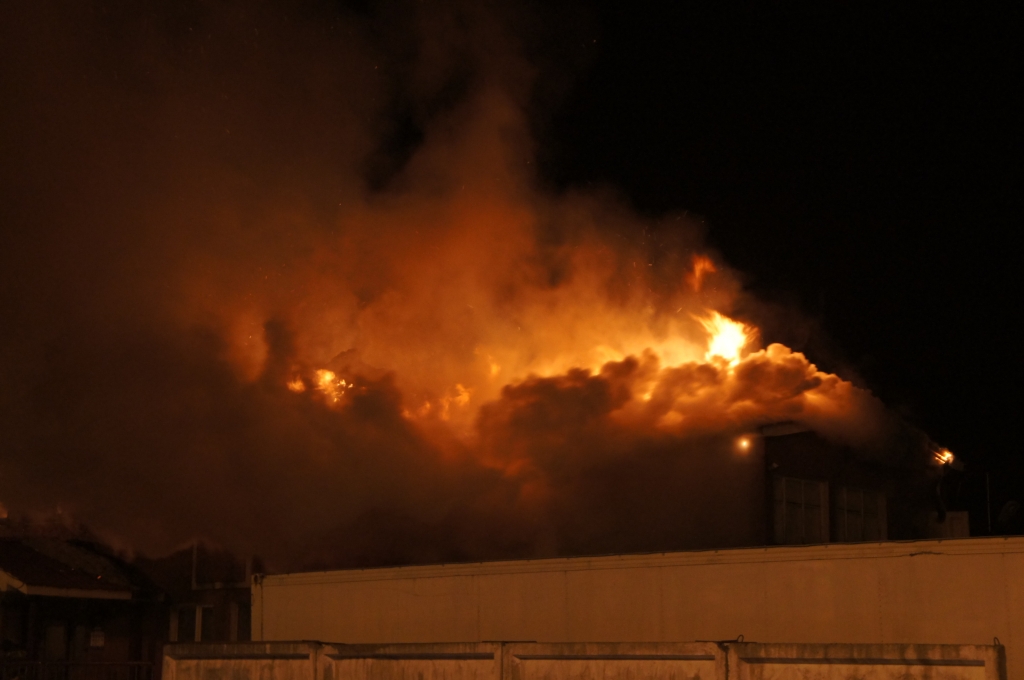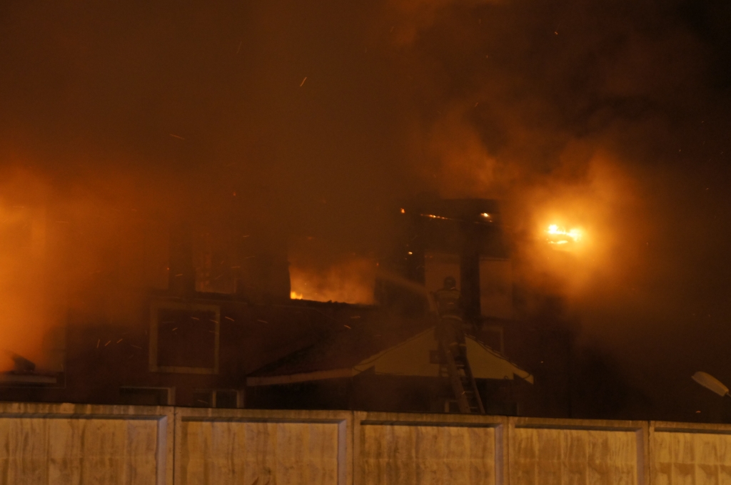 Общая площадь пожара составила 100 кв. метров. Огонь полностью уничтожил крышу и второй этаж комплекса.