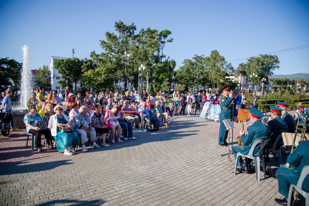 Настоящий праздник музыки подарил горожанам южно-сахалинский военный духовой оркестр. Выступление коллектива в рамках проекта "Культурная столица" состоялось в сквере у фонтанов на привокзальной площади областного центра, сообщает ИА SakhalinMedia со ссылкой на пресс-службу мэрии.