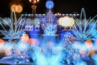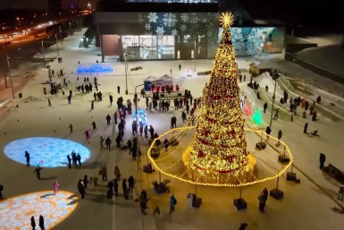 На площадке установлена праздничная ель, ледовые фигуры и гастрономическая зона