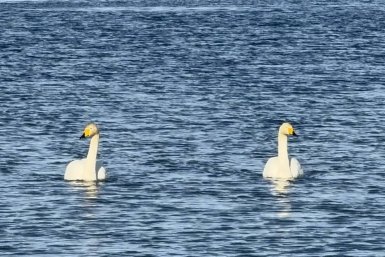Первые белоснежные лебеди прилетели в Невельск