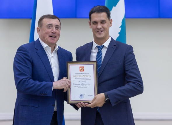 14 октября. 14 октября. ИА SakhalinMedia. Вице-мэр Южно-Сахалинска Дмитрий Хайбриев отмечен благодарностью президента РФ. Высокую награду в торжественной обстановке ему вручил губернатор Сахалинской области Валерий Лимаренко, отметив значительный вклад Дмитрия в успешную подготовку и проведение в региональной столице целого ряда социально значимых мероприятий, в том числе посвященных 80-летию Великой Победы и окончанию Второй мировой войны, сообщили в пресс-службе городской администрации.