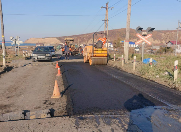 SakhalinMedia, 27 октября. Асфальтобетонное покрытие обновили возле ж/д переезда в Томари. О неудовлетворительном состоянии дороги на том участке жители райцентра сообщили на встрече с губернатором Валерием Лимаренко, которая состоялась на прошлой неделе, сообщили в пресс-службе минтранса Сахалинской области.