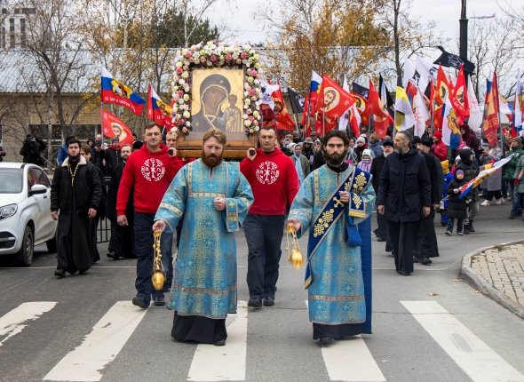 По данным пресс-службы регионального правительства, сотни жителей Южно-Сахалинска приняли участие в крестном ходе с Казанской иконой Божией Матери — главным символом освобождения Москвы от иноземных захватчиков в 1612 году. Процессия пошла от Кафедрального собора Рождества Христова к историческому парку "Россия — моя история".
