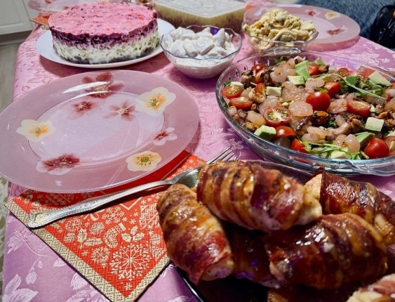 Эксперты советуют заранее позаботиться о покупке ингредиентов для традиционных новогодних блюд, таких как салат "Оливье" и "Селедка под шубой", а также растительного масла, конфет, красной икры, оливок и сладких напитков.