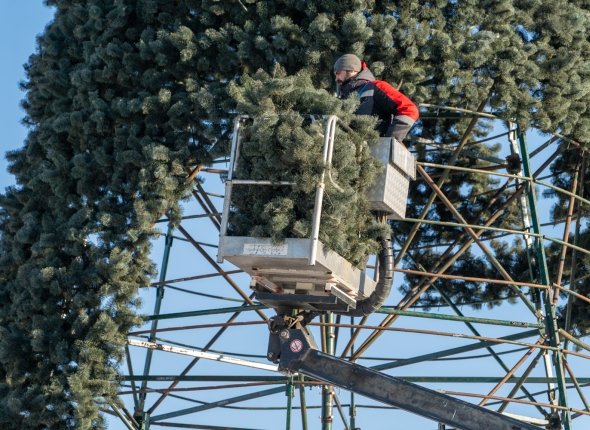 SakhalinMedia, 4 декабря. Установка праздничных объектов в преддверии Нового года продолжается в Южно-Сахалинске. Сегодня монтаж арт-объектов проводится на площади Ленина, сообщает пресс-служба администрации города.