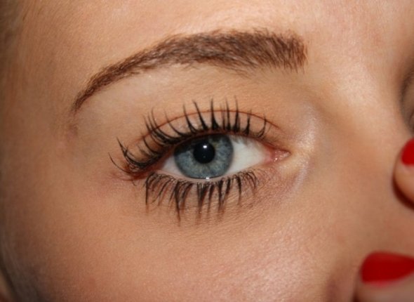 Аккуратно пройтись по линии роста ресниц, распределяя средство от корней к кончикам.