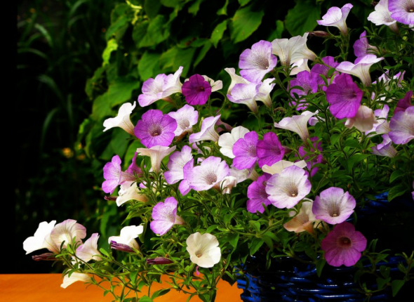 - петуния. Нежный стойкий цветок, который порадует вас своим пышным внешним видом с начала лета до самых заморозков. Но для этого важно высадить ее на солнце;