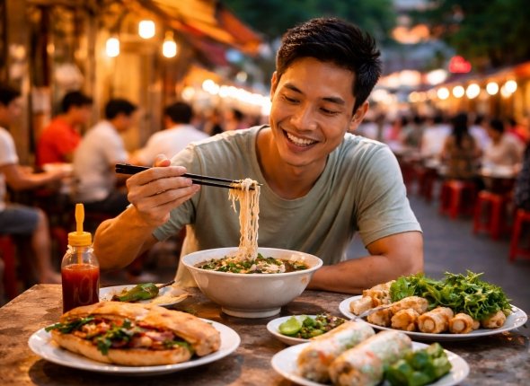 Хошимин невозможно представить без бань ми. Хрустящий багет с вьетнамским характером здесь готовят десятками способов: с жареной свининой, говядиной, маслом, яйцом, паштетом. Но классика — с вьетнамской колбасой, мясными деликатесами, маринованными овощами, чили и соусами. Это не просто сэндвич, а гастрономический символ города, доступный в любое время суток.