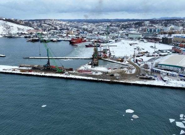 Масштабная реконструкция Корсаковского морского порта стартовала в 2024 году. Реализация проекта проходит в три этапа. Сейчас на объекте продолжается реконструкция причальных сооружений ФГУП "Нацрыбресурс". Завершить работы планируют в четвертом квартале 2026 года.