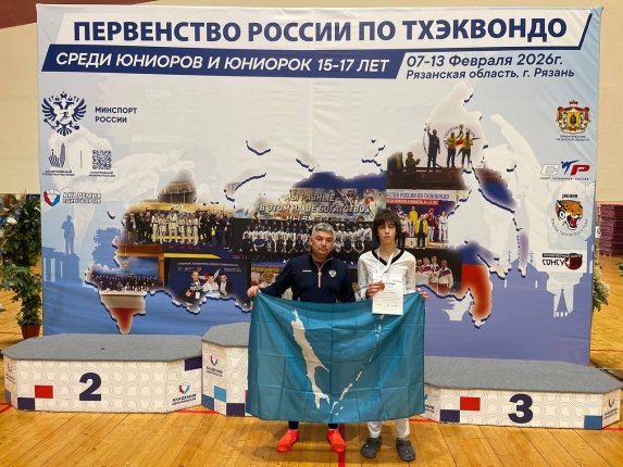 SakhalinMedia, 13 февраля. Воспитанник Сахалинской ассоциации тхэквондо Тимофей Тхагапсов занял третье место на первенстве России по тхэквондо ВТФ среди юниоров 15-17 лет (12+). Соревнования проходили в Рязани и собрали более 800 участников из 60 регионов страны, сообщает пресс-служба областного минспорта.