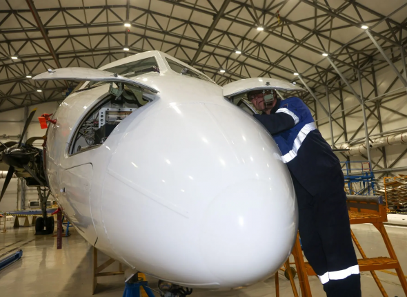 Сейчас в ангаре находится один из DHC-8 Q400. У него частично разобраны крылья, двигатели, в салоне демонтированы кресла и обшивка — проводится самое трудоемкое техобслуживание. Технический директор Вячеслав Грибков пояснил, что самолет разбирают до обшивки, проверяют все узлы и агрегаты на усталость металла, скрытые повреждения, коррозию. Заменяют детали, выработавшие ресурс, обновляют салон, перетягивают кресла. К концу марта работы завершатся, и из ангара выйдет, по сути, обновленная машина.