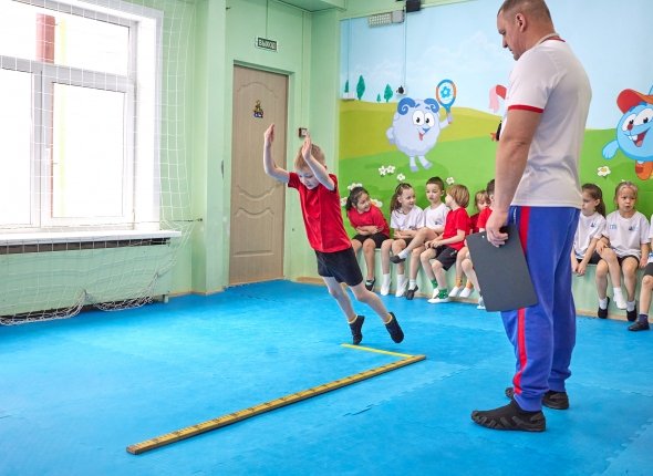 Инструктор по физической культуре Дмитрий Купреев рассказал, что в течение года на занятиях дети отрабатывают дисциплины, которые входят в нормативы ГТО: гибкость, прыжки в длину с места, бег.