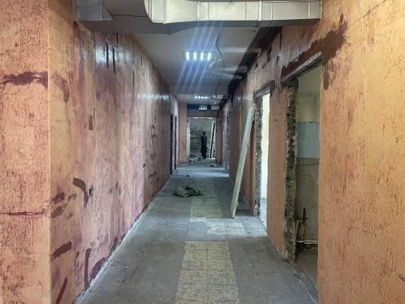 Второй корпус поликлиники был построен в 1990 году. За это время капитальный ремонт здесь ни разу не проводился — инженерные коммуникации успели износиться, а внешний облик давно требовал обновления. Строительная бригада приступила к работам в середине марта. На данный момент демонтаж старых конструкций уже завершен: рабочие сняли двери, разобрали стены и перегородки, удалили кафель.