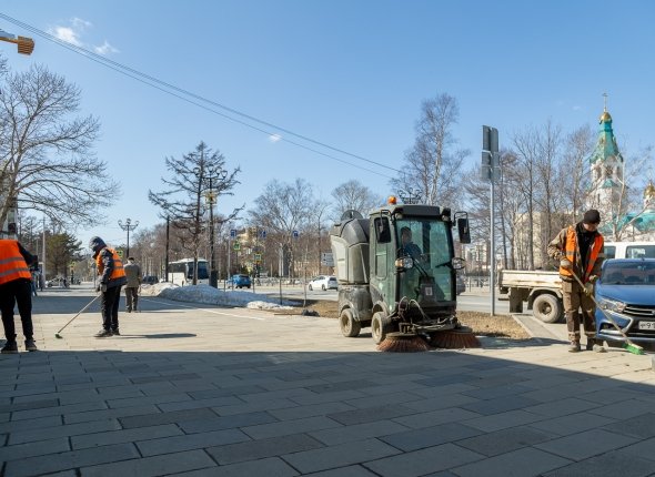 На улицы города уже вышли 40 единиц техники: комбинированные дорожные машины, дорожные и тротуарные пылесосы. В уборке задействованы 90 рабочих.