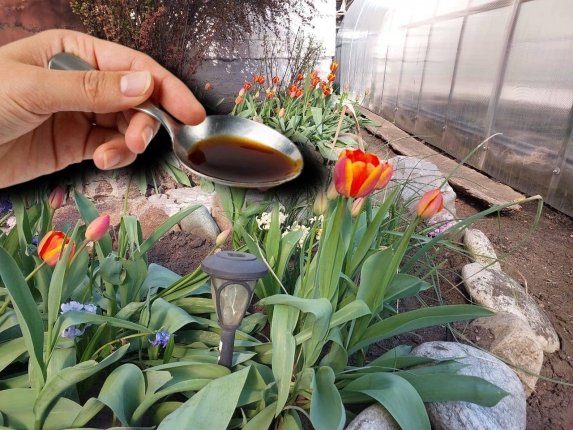 После таяния снега земля обычно ещё сырая, поэтому раствор просто поливают вокруг тюльпанов. Если же грунт уже подсох, сначала нужно полить цветы обычной водой, а потом уже удобрением. Это делается для того, чтобы не обжечь корни.