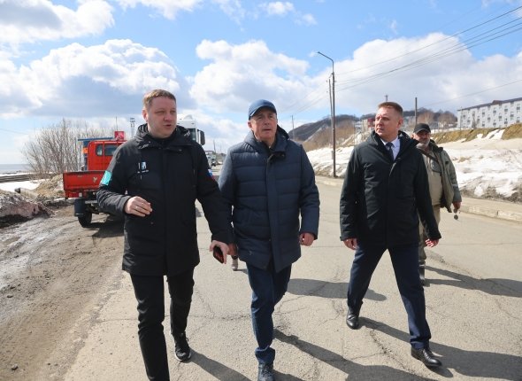 Ход ремонта трассы во время рабочей поездки в Макаровский район проинспектировал губернатор Валерий Лимаренко. Часть ям уже отремонтирована с помощью технологии литого асфальта, которая позволяет работать при минусовых температурах. Сейчас рабочие ждут, когда оттает земля. В мае, после запуска асфальтобетонных заводов, в ход пойдет горячий асфальт. По словам дорожников, техники и материалов хватает.