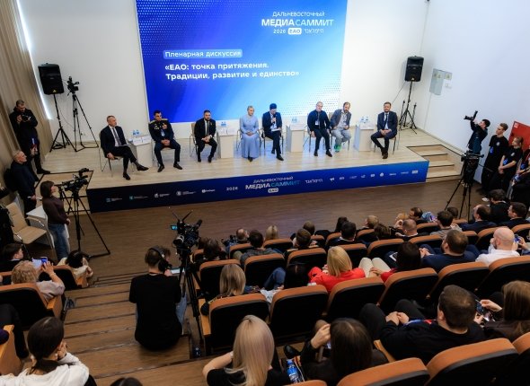 Дискуссионная и образовательная программы Дальневосточного МедиаСаммита (12+) завершилась сегодня, 11 апреля, в столице Еврейской автономной отрасли Биробиджане. В течение 10-го и 11 апреля на площадке Примамурского государственного университета участники одного из ведущих событий медиаотрасли ДФО — представители власти, бизнеса, федерального и регионального медиасообществ, иностранные гости, студенты и школьники — говорили о роли медиа в развитии Дальневосточного региона в целом и ЕАО в частности, совместно искали пути дальнейшего укрепления в медиапространстве идеи национального единства и исторической преемственности в Год единства народов России, вели межстрановой диалог с дипломатами и представителями СМИ дружественных стран.