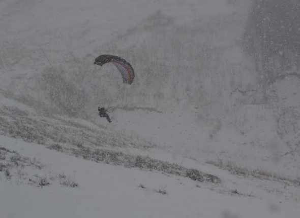 Справка: Спидрайдинг - новый зимний вид спорта, суть которого состоит в скольжении на горных лыжах при помощи небольшого параплана. Связывание полета на планере с лыжами добавляет новые возможности в спуске с горы. Крылья могут достигать скорости свыше 150 км в час.