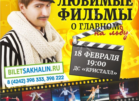 Новое ледовое шоу “Любимые фильмы о главном” подарит жителям и гостям Южно-Сахалинска Илья Авербух и его компания. Выступление именитых фигуристов состоится 18 февраля во Дворце спорта “Кристалл” в 19.00, сообщает ИА SakhalinMedia со ссылкой на пресс-службу ООО “Корпорация событий”.