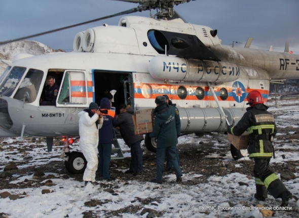 SakhalinMedia, 3 декабря 2015. Насосную станцию и дизельный электрогенератор, которые помогут ускорить ход работ по откачке нефтепродуктов, доставил вчера на место аварии судна "Надежда" в Невельске вертолет МЧС России. После этого экипаж забрал перепачканных мазутом 59 беринговых бакланов. Операция по ликвидации последствий аварии у берегов Невельска продолжается, сообщает ИА SakhalinMedia со ссылкой на релиз ГУ МЧС России по Сахалинской области и правительства Сахалинской области.