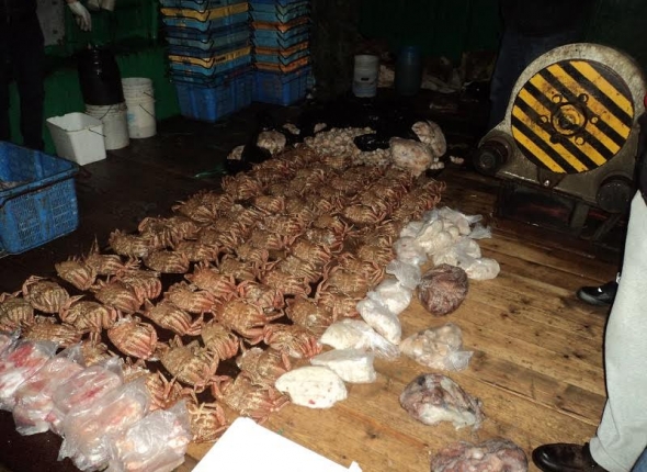 SakhalinMedia, 8 декабря 2015. Сахалинские пограничники на борту МДС "Юнона" обнаружили в пустых цистернах пресной воды нелегально выловленного краба. Нанесенный ущерб государству предварительно составил более 120 тысяч рублей. Обнаруженная продукция незаконного промысла изъята и передана на ответственное хранение. Проводится разбирательство, сообщили ИА SakhalinMedia в пресс-службе ФСБ России по Сахалинской области.