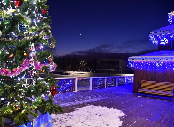 Посетители городского парка вечером погружаются в мир новогодней сказки. Установлены ледовые скульптуры с подсветкой, построены ледовые городки, горки. На центральной аллее залит самый длинный на острове каток, а рядом стадион "Космос" превращен в самый большой на Сахалине по площади каток. Все подсвечено разноцветными фонарями, а специальные лазерные проекторы разнообразили дорожки и Верхнее озеро цветными изображениями на новогоднюю тематику, сообщает корр. ИА SakhalinMedia.