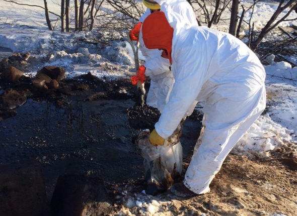 SakhalinMedia, 4 марта 2016. На Сахалине продолжается ликвидация последствий разлива нефти, произошедшего 2 марта на месторождении "Эхаби" ООО "РН–Сахалинморнефтегаз", сообщает корр. ИА SakhalinMedia.