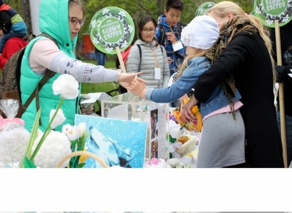 С самого утра, в воскресенье, на площадке у механических аттракционов перед многочисленными отдыхающими была развернута ярмарка изделий ручной работы от школьников и неравнодушных жителей города. Основным элементом всех поделок стал белый цветок. Конкретных цен у изделий не было. Любой желающий в зависимости от собственных желаний и возможностей мог оставить n-сумму денег и забрать любой понравившийся товар, представленный на ярмарке.