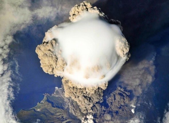На странице Роскосмоса в социальной сети Instagram сообщается, что потрясающую фотографию извержения вулкана Пик Сарычева на острове Матуа (Курильские острова), сделал космонавт Олег Котов с борта Международной космической станции во время второго полета. Фотография долго "пылилась" в электронных архивах и, наконец, ее увидела широкая общественность. Менее чем за сутки публикация собрала более 16-ти тысяч отметок "Нравится".