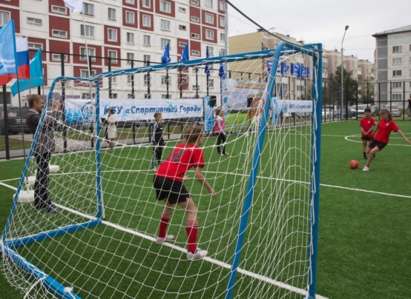 После торжественной части был дан старт очередному этапу городского турнира по мини-футболу "Битва дворов". Участие в соревнованиях принимают дворовые команды. Возраст футболистов — от 14 лет. Причем, возможность побороться за звание сильнейших на этом турнире получили не только юноши, но и представительницы прекрасного пола. Первую игру на новой площадке провели сборные "Сахалиночка" (СахГУ) и Ювента (МБОУ СОШ №32, п/р Ново-Александровск).