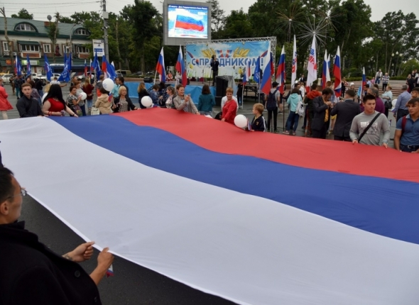 Митингом и концертом отпраздновали государственный праздник – День флага России на площади Ленина в Южно-Сахалинске, сообщает корр. ИА SakhalinMedia.