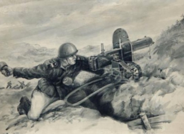 И тогда Антон Ефимович Буюклы поднялся, толкнул "Максим" вперед, закрыл им амбразуру и навалился сверху, удерживая свой пулемет, чтобы его не снесло от амбразуры вражескими пулями. Отважный воин получил несколько тяжелых ранений в руки и ноги, но продолжал закрывать амбразуру до последнего своего вздоха — пока наступающая рота не преодолела простреливаемый участок.