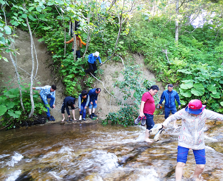 В составе группы были профессора университетов, преподаватели школ, специалисты в области туризма, служащие министерства образования Республики Корея – все разных возрастов. Самый старший участник, бывший житель острова Сахалин, которому в этом году исполнилось 80 лет, сумел пешком дойти до озер Кипящее и Горячее в кальдере и вернуться назад. Только последние 2 км на обратном пути он проехал на квадроцикле с инспектором заповедника.