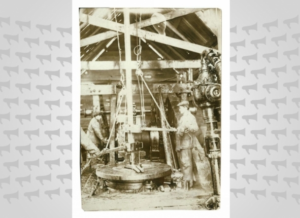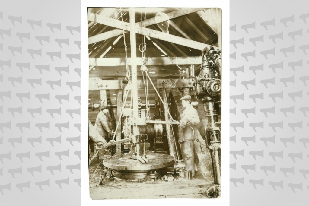 Внедрение передовой техники на нефтепромысле 5-го участка "Северная Оха" (роторы вращательного бурения) в 1935 году в городе Охе.